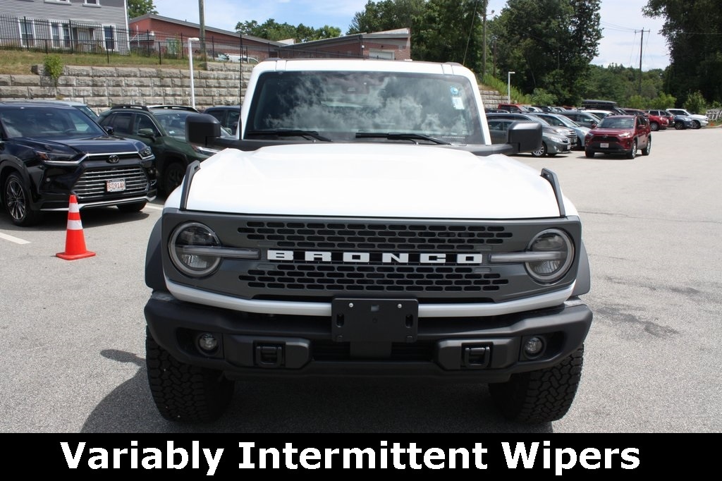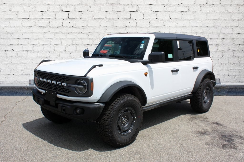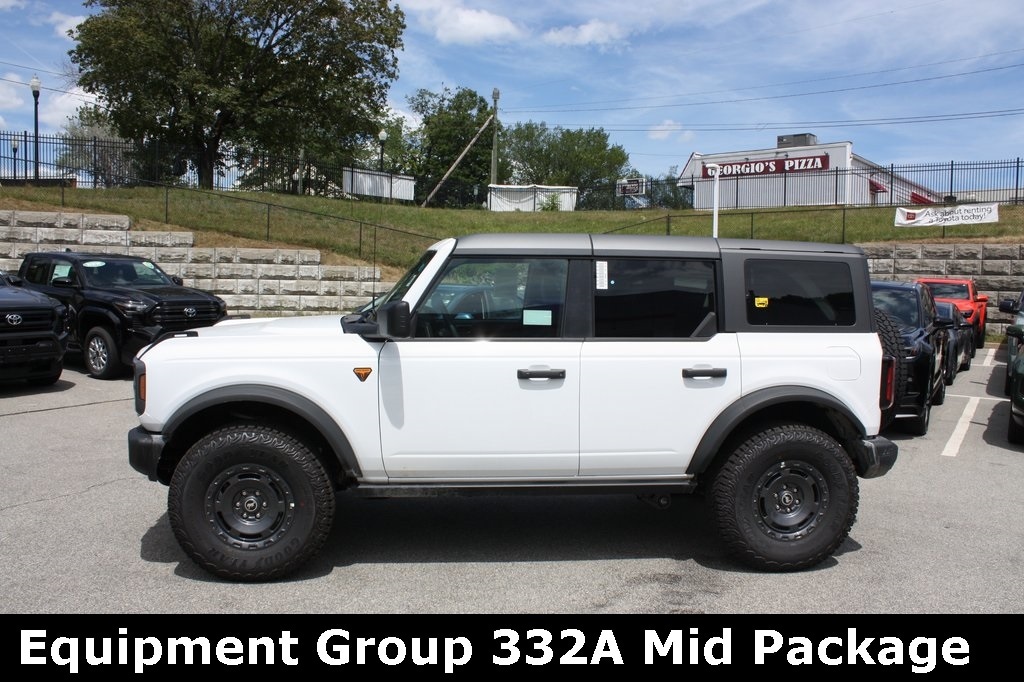 The 2025 Ford Bronco Badlands in crisp Oxford White combines rugged off-road capability with premium technology for an exhilarating adventure. Equipped with Connected Navigation, SiriusXM with 360L, and SYNC 4, it ensures seamless connectivity and entertainment. Conquer any terrain with position-sensitive Bilstein shock absorbers, high clearance suspension, high clearance fender flares, and integrated roll-over protection. Comfort is elevated with heated front seats, marine grade vinyl heated bucket seats, a heated steering wheel, and an auto-dimming rear-view mirror. Heated door mirrors and an exterior parking camera enhance visibility and safety, making this Bronco Badlands ideal for thrill-seekers and outdoor enthusiasts.