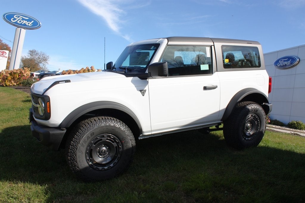 The 2025 Ford Bronco Base in crisp Oxford White blends rugged capability with modern technology for an adventurous driving experience. Equipped with SiriusXM with 360L and SYNC 4, it ensures seamless connectivity and entertainment. Built for off-road prowess with position-sensitive Bilstein shock absorbers, high clearance suspension, high clearance fender flares, and integrated roll-over protection, its ready for any terrain. The convertible hardtop with roof lining adds versatility, while safety features like an exterior parking camera, heated door mirrors, security system, and compass provide confident handling, making this Bronco Base ideal for thrill-seekers and urban explorers alike.