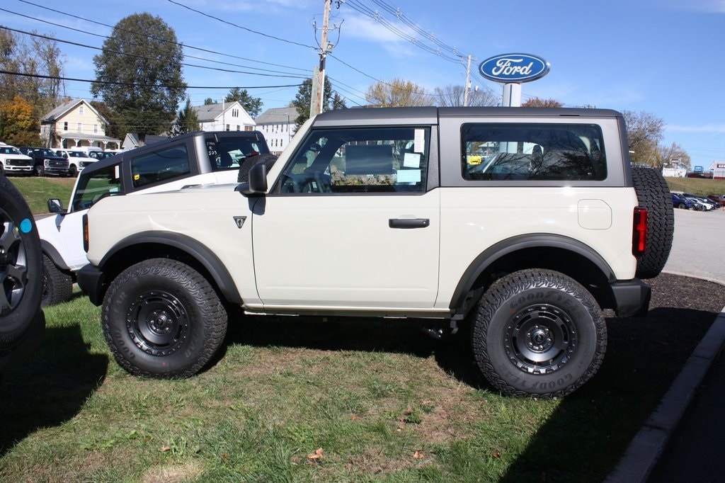 The 2025 Ford Bronco Base in crisp Oxford White blends rugged style with modern technology for an exhilarating driving experience. Equipped with SYNC 4, SiriusXM with 360L, and remote keyless entry, it ensures seamless connectivity and convenient access. Built for adventure with position-sensitive Bilstein shock absorbers, high clearance suspension, high clearance fender flares, and integrated roll-over protection, it conquers any terrain. Comfort is enhanced with cloth bucket seats and convertible roof lining, while safety features like an exterior parking camera, heated door mirrors, and a compass provide confident handling, making this Bronco Base ideal for off-road thrills and urban adventures.