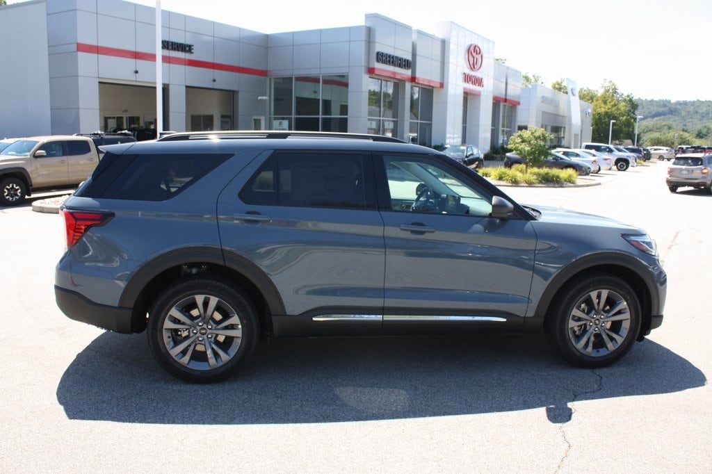 The 2025 Ford Explorer Active in vibrant Vapor Blue Metallic blends bold style with modern technology for a versatile driving experience. Equipped with a Navigation System, SiriusXM, and Apple CarPlay/Android Auto, it ensures seamless connectivity and entertainment. Enjoy heated front seats, a heated steering wheel, and heated door mirrors for premium comfort in any weather. Safety is prioritized with a low tire pressure warning, occupant sensing airbag, exterior parking camera, and speed-sensitive wipers for confident handling. The remote start system and power liftgate add convenience, making this Explorer Active ideal for family commutes and adventurous getaways.