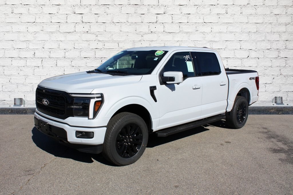 The 2025 Ford F-150 Lariat in elegant Star White Metallic Tri-Coat blends luxurious style with advanced technology for an exceptional driving experience. Equipped with Connected Navigation, SiriusXM with 360L, SYNC 4 with Enhanced Voice Recognition, and a B&O Sound System by Bang & Olufsen, it ensures seamless connectivity and premium audio. Enjoy heated and ventilated front seats, a heated steering wheel, and illuminated driver and passenger visors for ultimate comfort, while a power-sliding rear window, partitioned lockable rear storage, console worksurface, and 6" angular bright anodized step bar add practicality and flair. Rain sensing wipers and turn signal indicator mirrors enhance safety and visibility, making this F-150 Lariat ideal for sophisticated commutes and rugged adventures.