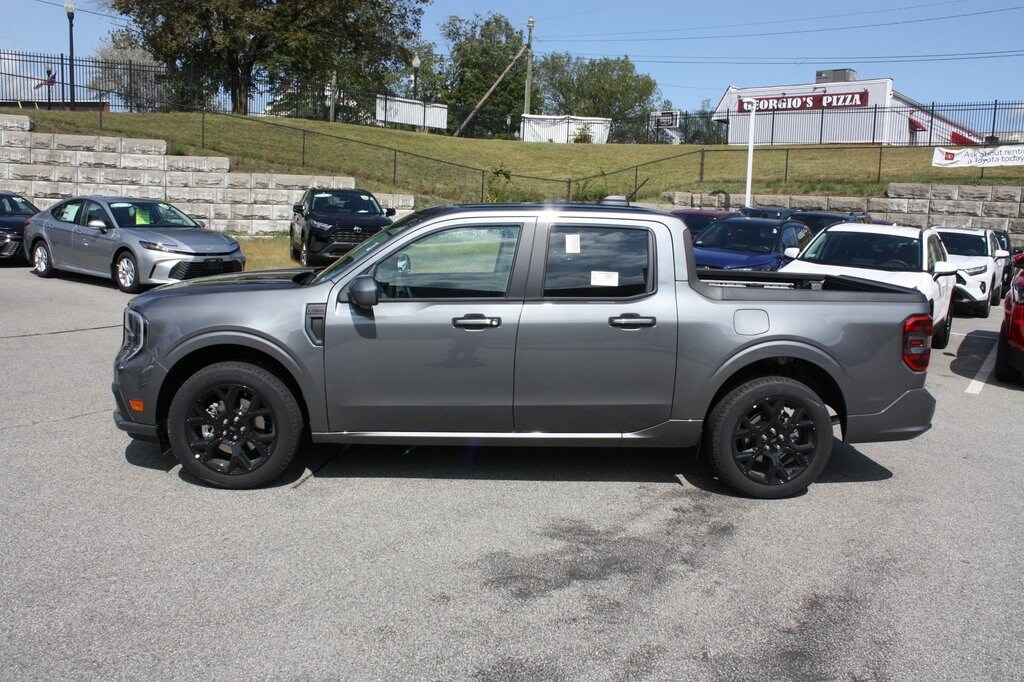 The 2025 Ford Maverick Lobo High in sleek Carbonized Gray Metallic blends bold style with cutting-edge technology for an exhilarating driving experience. Equipped with Connected Navigation, SYNC 4 with Enhanced Voice Recognition, B&O Sound System by Bang & Olufsen, Apple CarPlay/Android Auto, and Electric Sound Enhancement, it delivers premium connectivity and immersive audio. Enjoy heated seats, a heated steering wheel, a power moonroof, wireless charging pad, ambient lighting, and LED box lighting for ultimate comfort and flair, while a tough bed spray-in bedliner, bed tie down locking rails with 2 locking brackets, 400W inverter with USB console rear, power-sliding rear window, and acoustic windshield enhance utility. Safety is prioritized with Ford Co-Pilot Assist 2.0, Adaptive Cruise Control with Stop & Go, Blind Spot Assist, Lane-Keeping System, Intersection Assist, Evasive Steering Assist, Reverse Brake Assist, Post-Collision Braking, Pro Trailer Hitch and Backup Assist, front and rear parking sensors, 360-degree camera, exterior parking camera, predictive speed assist, and front and rear all-weather floor liners, making this Maverick Lobo High ideal for urban adventures and rugged tasks.