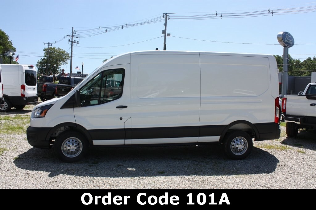 The 2025 Ford Transit-250 Base in classic Oxford White offers dependable performance and practical features for all your business needs. Equipped with a midship extended range 31-gallon fuel tank and 16" silver steel wheels with silver hubcaps, its built for efficiency and durability. Stay safe with traction control, low tire pressure warning, occupant sensing airbag, exterior parking camera, and panic alarm, while illuminated entry, remote keyless entry, and power door mirrors add convenience. The comfortable ebony cloth bucket seats and variably intermittent wipers ensure a smooth and reliable ride, making this Transit-250 the perfect choice for work and transport.
