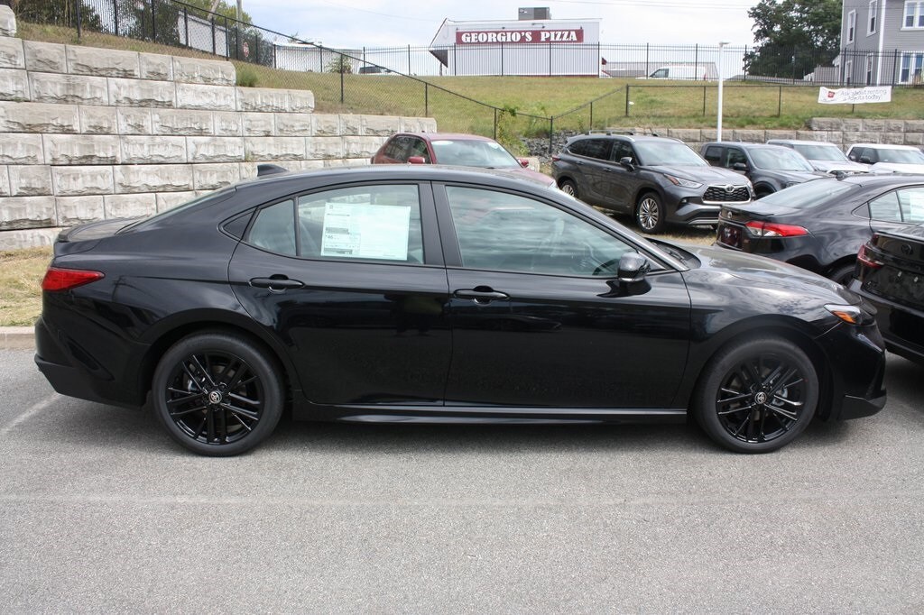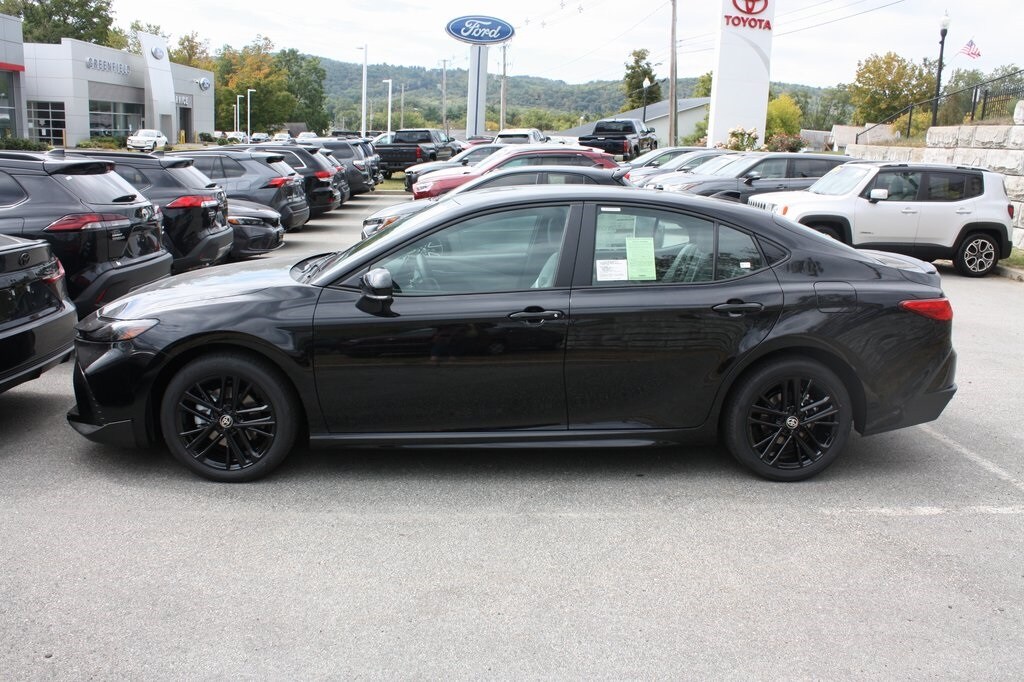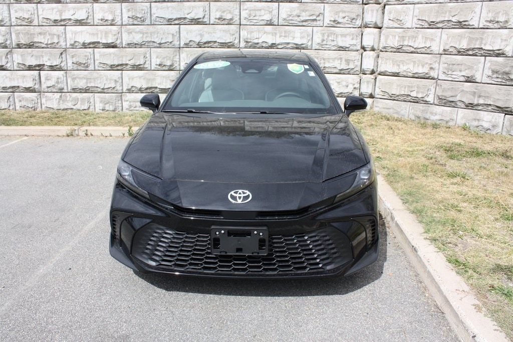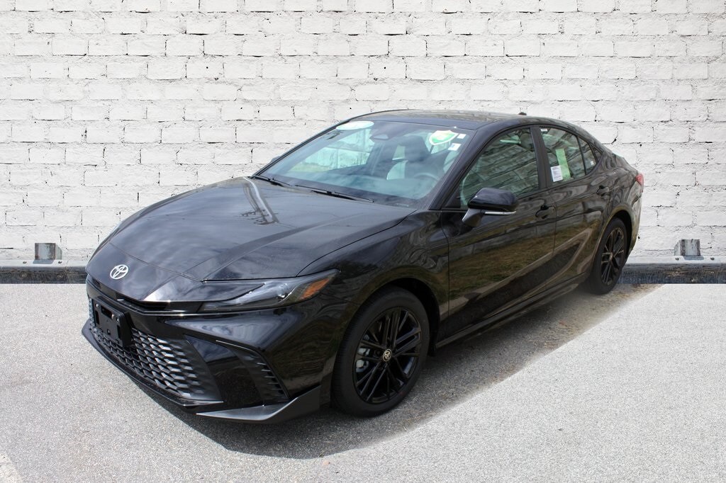 The 2025 Toyota Camry SE in sleek Midnight Black Metallic blends bold style with advanced technology for a dynamic driving experience. Equipped with SiriusXM, Apple CarPlay/Android Auto, Smart Key System, and an auto-dimming rearview mirror with HomeLink, it ensures seamless connectivity and convenience. Enjoy heated front seats and a leather-wrapped heated steering wheel for premium comfort. Safety is prioritized with remote keyless entry, low tire pressure warning, occupant sensing airbag, exterior parking camera, and heated turn signal indicator mirrors, while all-weather floor protection adds durability, making this Camry SE ideal for stylish commutes and spirited road trips.