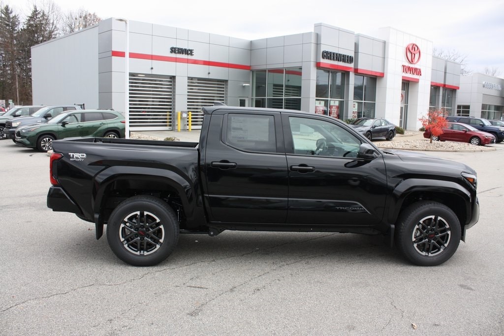 The 2025 Toyota Tacoma TRD Sport in sleek Black exterior color blends dynamic style with modern technology for a thrilling driving experience. Equipped with SiriusXM and Apple CarPlay/Android Auto, it ensures seamless connectivity and entertainment. Safety is prioritized with remote keyless entry, anti-whiplash front head restraints, low tire pressure warning, occupant sensing airbag, exterior parking camera, variably intermittent wipers, and turn signal indicator mirrors for confident handling. Features like all-weather floor liners, mudguards, and door edge guards add durability and practicality, making this Tacoma TRD Sport ideal for spirited commutes and adventurous outings.