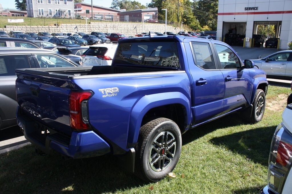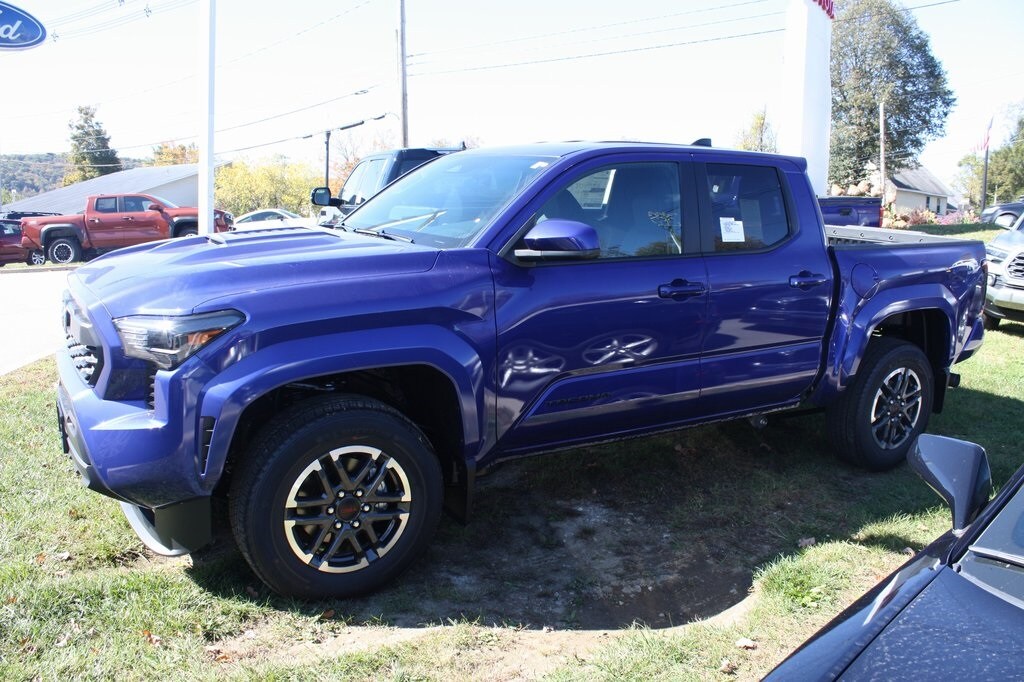 The 2025 Toyota Tacoma TRD Sport in vibrant Blue Crush Metallic blends dynamic style with modern technology for an exhilarating driving experience. Equipped with SiriusXM, Apple CarPlay/Android Auto, and remote keyless entry, it ensures seamless connectivity and convenient access. Enjoy heated seats and an auto-dimming rear-view mirror for premium comfort, while alloy wheels, all-weather floor liners, mudguards, and door edge guards add durability and flair. Safety is prioritized with anti-whiplash front head restraints, low tire pressure warning, occupant sensing airbag, exterior parking camera, variably intermittent wipers, and turn signal indicator mirrors, making this Tacoma TRD Sport ideal for spirited drives and rugged adventures.