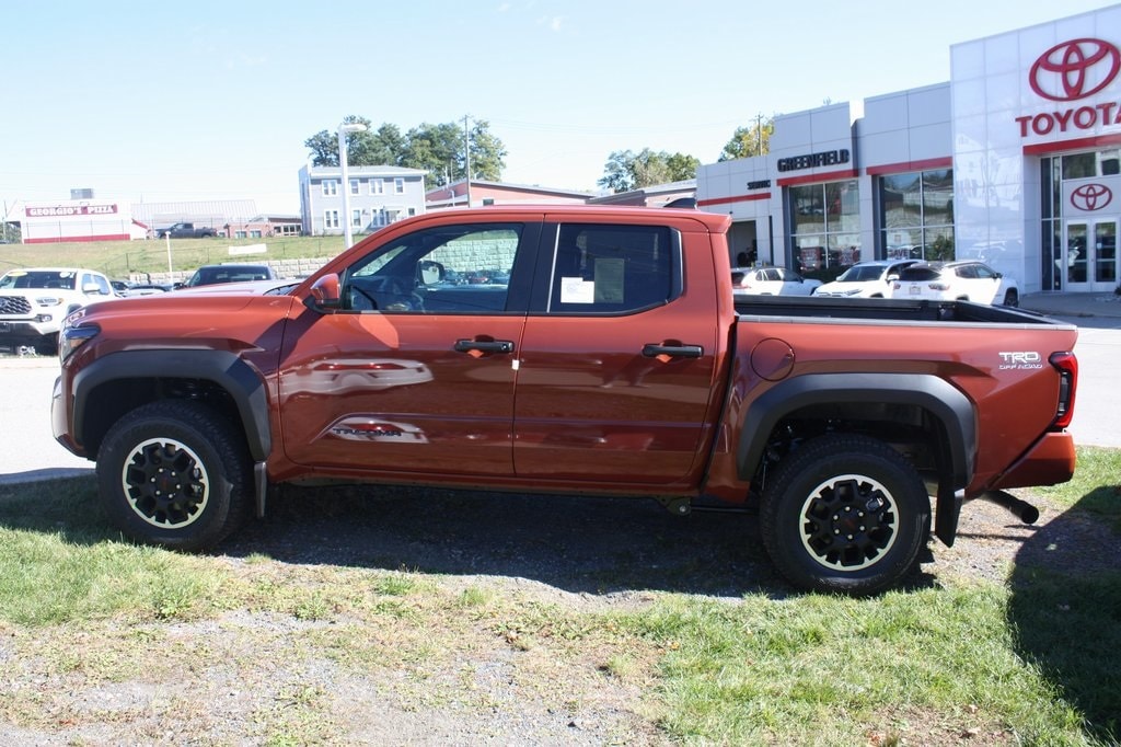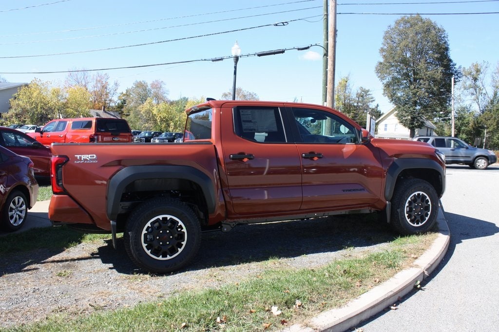 The 2025 Toyota Tacoma TRD Off-Road in bold Terra exterior color blends rugged capability with modern technology for an adventurous driving experience. Equipped with SiriusXM, Apple CarPlay/Android Auto, and remote keyless entry, it ensures seamless connectivity and convenient access. Safety is prioritized with speed-sensing steering, anti-whiplash front head restraints, low tire pressure warning, occupant sensing airbag, exterior parking camera, and turn signal indicator mirrors for confident handling. Features like alloy wheels, an auto-dimming rearview mirror, all-weather floor liners, mudguards, and door edge guards add style and durability, making this Tacoma TRD Off-Road ideal for off-road exploration and daily commutes.