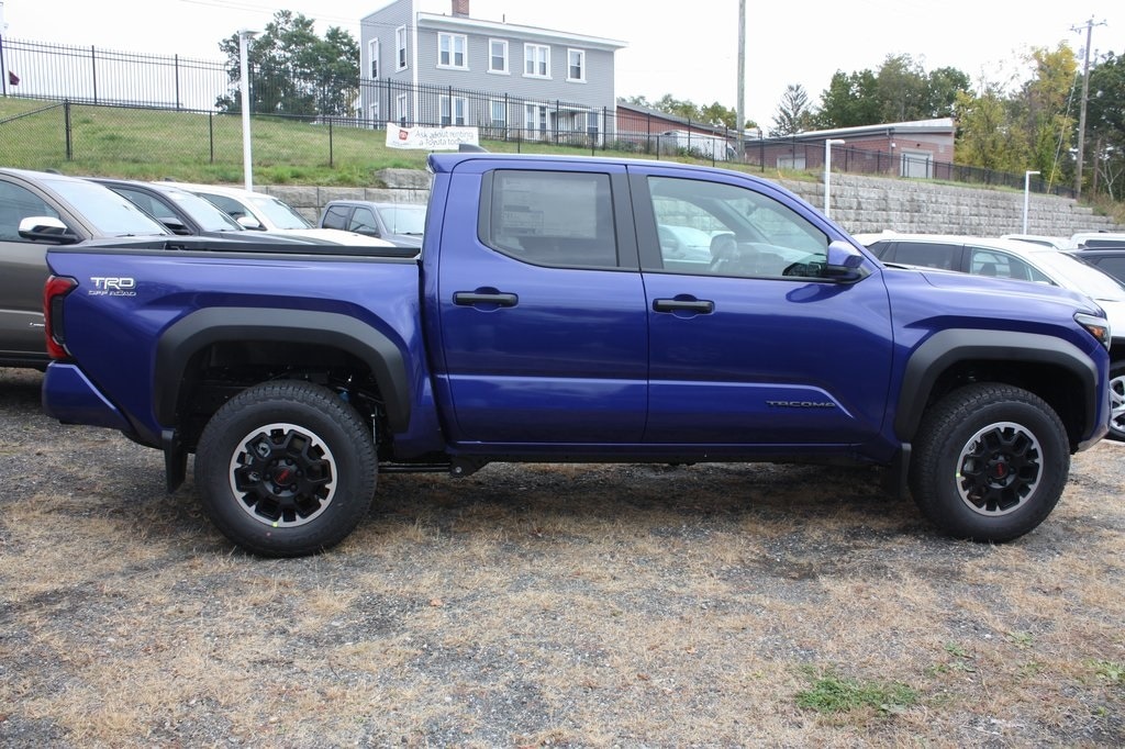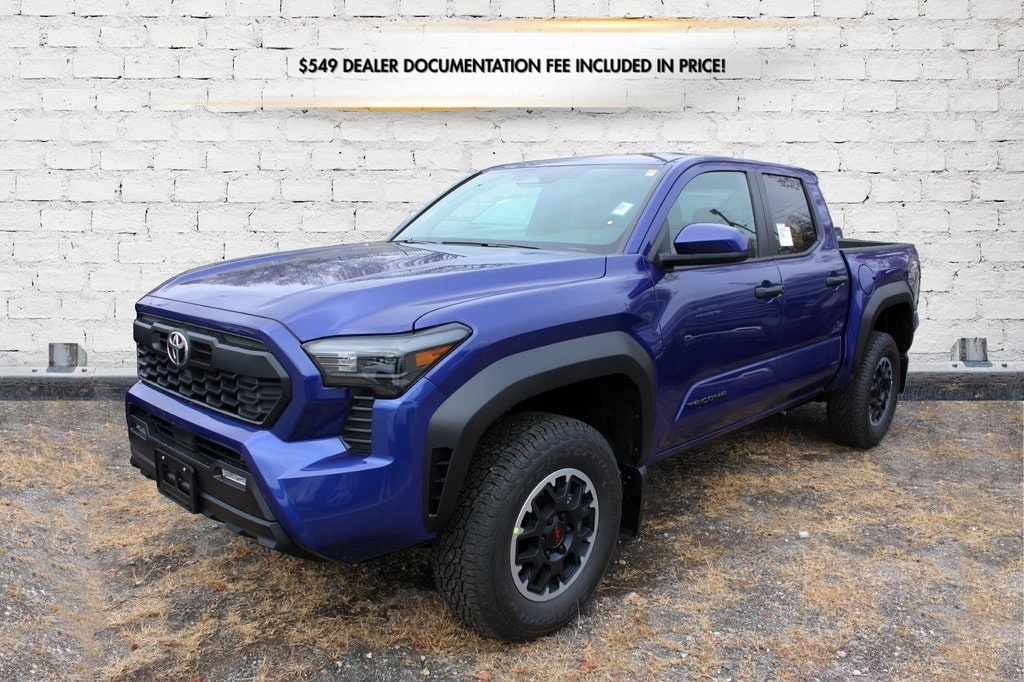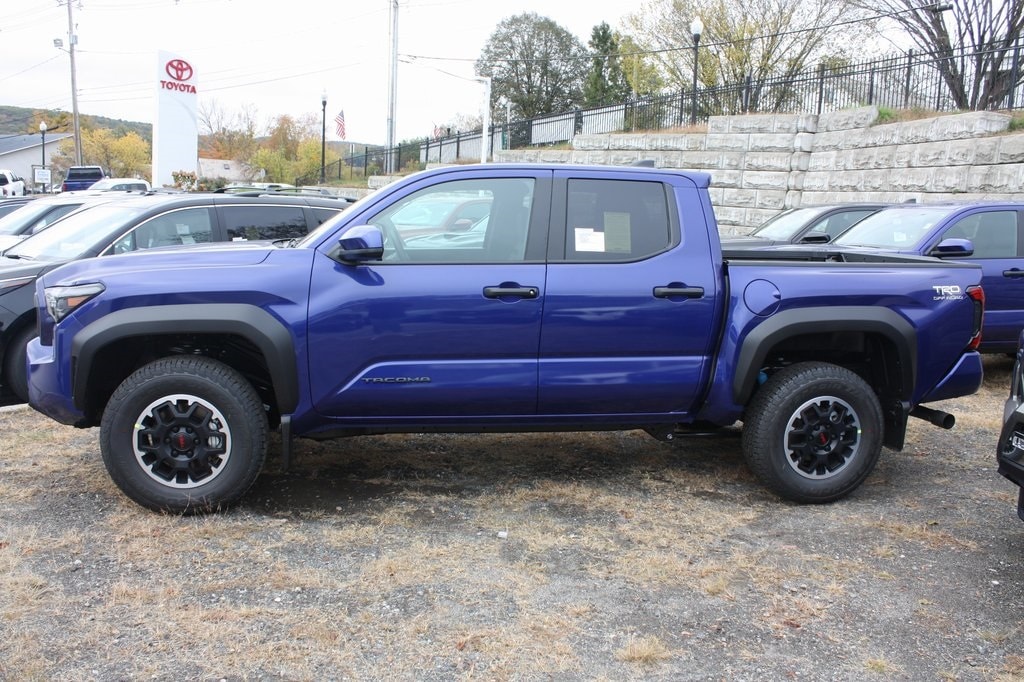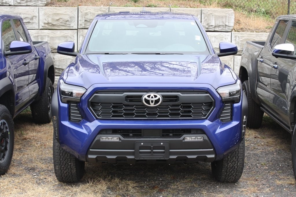 The 2025 Toyota Tacoma TRD Off-Road in vibrant Blue Crush Metallic blends rugged capability with modern technology for an adventurous driving experience. Equipped with SiriusXM, Apple CarPlay/Android Auto, and remote keyless entry, it ensures seamless connectivity and convenient access. Enjoy SofTex seat trim and a leather steering wheel for premium comfort, while 17" TRD Off-Road alloy wheels, all-weather floor liners, mudguards, and door edge guards enhance durability and style. Safety is prioritized with anti-whiplash front head restraints, low tire pressure warning, occupant sensing airbag, exterior parking camera, and turn signal indicator mirrors, making this Tacoma TRD Off-Road ideal for off-road exploration and daily commutes.