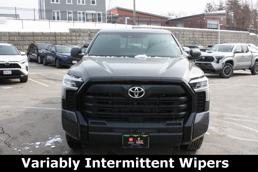 Dominate the road with the 2025 Toyota Tundra SR in striking Magnetic Gray Metallic. Built for strength and style, this powerhouse features 18-inch styled steel wheels and heated door mirrors for added convenience. Stay connected with Apple CarPlay, Android Auto, and SiriusXM while the exterior parking camera enhances visibility. Safety comes standard with Auto High-Beam Headlights, a low tire pressure warning, and Toyotas Safety Connect for peace of mind. Inside, fabric-trimmed seats and illuminated entry create a comfortable cabin, while variably intermittent wipers keep your view clear in any weather. Take on any challenge with confidence in the Tundra SR.