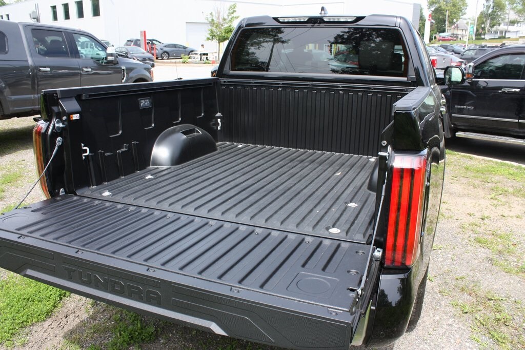 Command the road in the 2025 Toyota Tundra Hybrid Limited, with a striking Midnight Black Metallic exterior. Stay connected with the Navigation System, SiriusXM, and seamless Apple CarPlay and Android Auto integration. Enjoy the convenience of Remote Keyless Entry, a Qi-Compatible Wireless Smartphone Charger, and a Garage Door Transmitter with HomeLink. Drive with confidence thanks to the Blind Spot Monitor, Exterior Parking Camera, and advanced Panoramic and Multi-Terrain Back Monitors. Luxurious Heated and Ventilated Front Bucket Seats and a Heated Leather Steering Wheel elevate your comfort, while Stainless Steel Door Edge Guards and All-Weather Floor Liners add durability. High Grade Full LED Headlamps and Heated Power Folding Color-Keyed Outside Mirrors ensure visibility in any condition. Experience the power and refinement of the Tundra Hybrid Limited today!