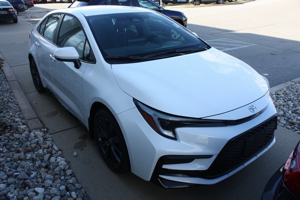 The 2026 Toyota Corolla SE in crisp Ice Cap exterior color blends sporty style with modern technology for a dynamic driving experience. Equipped with SiriusXM and Apple CarPlay/Android Auto, it ensures seamless connectivity and entertainment on every journey. Safety is prioritized with remote keyless entry, low tire pressure warning, exterior parking camera, and turn signal indicator mirrors for confident handling. Features like alloy wheels add a touch of elegance, while door edge guards and mudguards provide durable protection, making this Corolla SE ideal for spirited commutes and everyday adventures.
