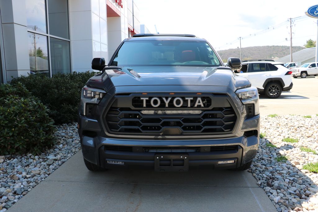 This 2026 Toyota Sequoia 4WD TRD Pro Hybrid delivers unmatched power, advanced off-road capability, and premium technology for every adventure. KEY FEATURES: i-FORCE MAX twin-turbo V6 hybrid engine producing 437 hp and 583 lb-ft of torque, 10-speed automatic transmission with sequential shift, drive mode select with Tow/Haul modes, Multi-Terrain Select, Crawl Control, 4WDemand part-time 4WD with electronically controlled transfer case, electronic locking rear differential, and TRD Pro off-road suspension with FOX shocks. Safety and convenience include Toyota Safety Sense 2.5 with pre-collision system, Multi-Terrain Monitor, and connected services capability. Exterior highlights feature 18-inch BBS forged-aluminum wheels, TRD cast-aluminum running boards, auto-leveling LED headlights with sequential turn signals, TOYOTA grille with LED light bar, and TRD aluminum skid plate. Inside, enjoy 14-inch Toyota Audio Multimedia with wireless Apple CarPlay and Android Auto, SiriusXM with 3-month trial, JBL 14-speaker system with subwoofer and amplifier, 12.3-inch digital gauge cluster, smart key system with red push-button start, TRD Pro SofTex-trimmed heated and ventilated power front seats with lumbar support, power folding sliding 3rd row with adjustable cargo shelf, and power liftgate with flip-up glass. Optional upgrades include SR panoramic roof with power sunshade, Tow Tech Package with wireless trailer camera system, and door edge guards. Come in for a test drive today at 1 Main Street in Greenfield, Ma off of exit 43 (Previously exit 26) on I-91. Includes, $549 Dealer Documentation fee. Proudly serving Franklin & Hampshire County. Including Greenfield, Montague, Millers Falls, Erving, Gill, Northfield, Deerfield, Sunderland, Bernardston, Hadley, Amherst and Northampton, Massachusetts. Minutes from Brattleboro, VT & Keene, NH. Price excludes, tax, title, and registration fees.