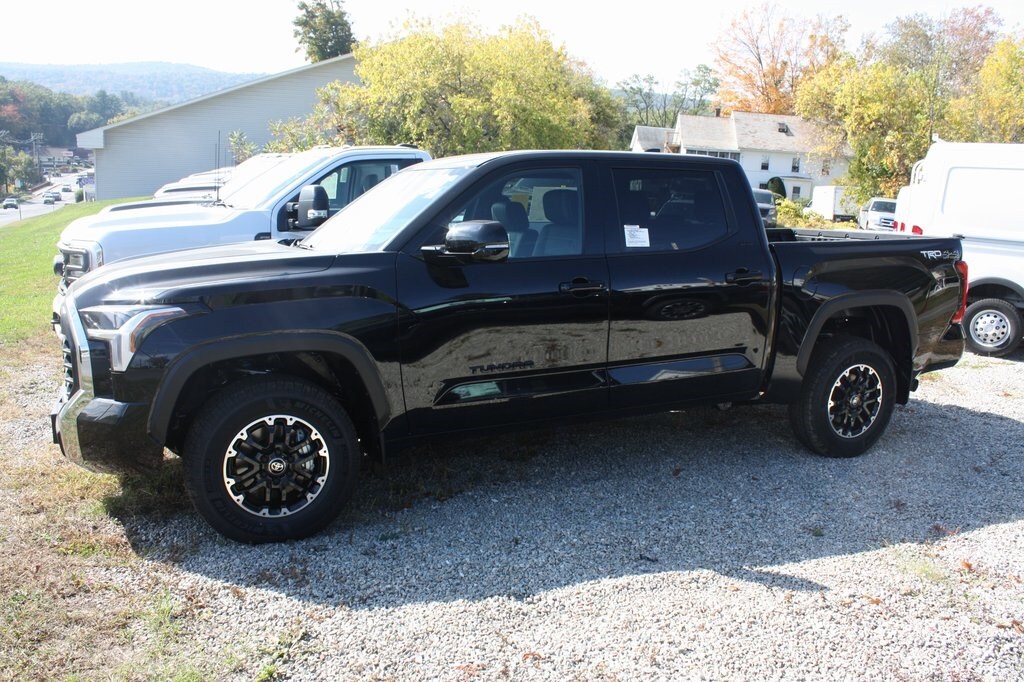 The 2026 Toyota Tundra SR5 in sleek Midnight Black Metallic blends rugged capability with premium technology for an exhilarating driving experience. Equipped with the Advanced Off-Road Technology Package, including Blind Spot Monitor, Front and Rear Parking Assist with Automatic Braking, Multi-Terrain Monitor, and Trailer Backup Guide with Straight Path Assist, it ensures confident handling on any terrain. The Premium Audio Package offers a 14-inch Toyota Audio Multimedia system, 400W/120V AC bed and cabin power supply, and LED bed lights for enhanced connectivity and utility. The TRD Off-Road Premium Package elevates style and performance with a TRD grille, off-road suspension with Bilstein shocks, skid plates, mud guards, electronically controlled locking rear differential, Multi-Terrain Select, Crawl Control, Downhill Assist Control, TRD 18-inch off-road wheels, leather-trimmed 8-way power-adjustable heated front seats, dual zone automatic climate control, TRD leather-wrapped shift knob, aluminum sport pedals, red TRD engine start button, color-keyed outer door handles, leather-wrapped steering wheel, all-weather floor liners, and stainless steel door edge guards, making this Tundra SR5 ideal for adventurous journeys and daily commutes.