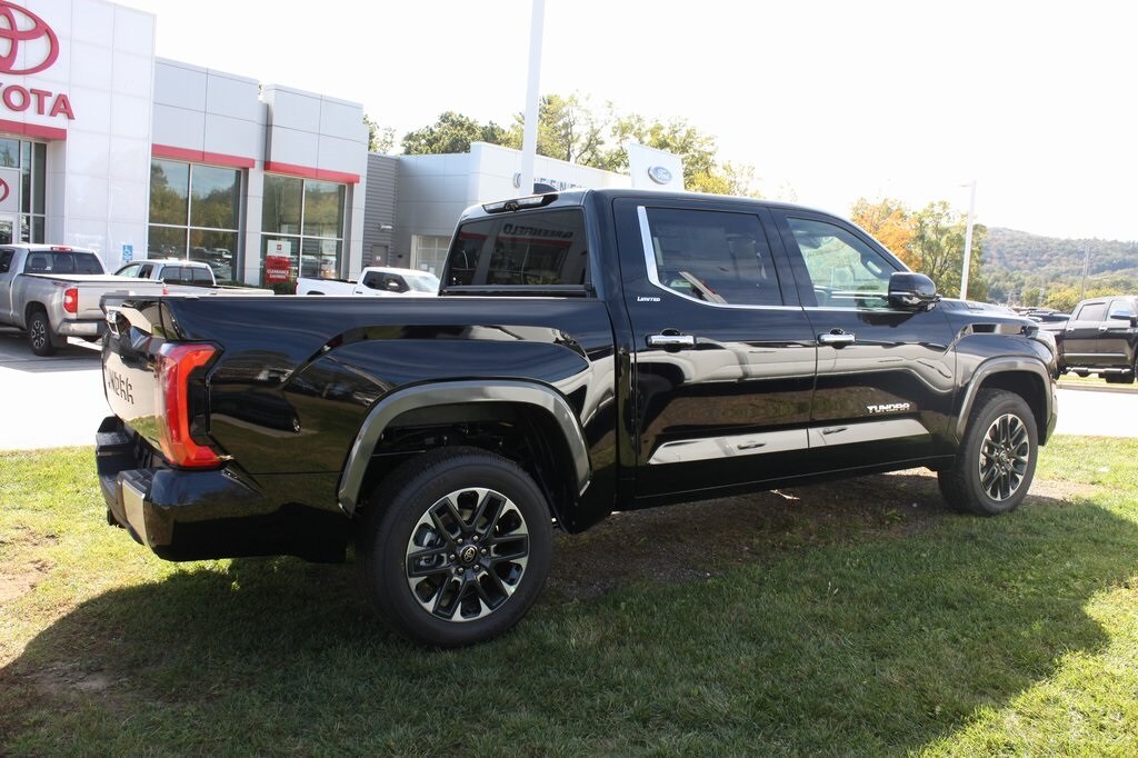 The 2026 Toyota Tundra Limited in sleek Midnight Black Metallic blends bold style with advanced technology for a premium driving experience. Equipped with a 12-Speaker JBL Premium Audio system, Limited Premium Package with Premium LED Headlights and Towing Technology Package, Panoramic View Monitor, and Limited Power Package featuring Qi-Compatible Wireless Smartphone Charging, 400W/120V AC bed and cabin power supply, and LED bed lights, it ensures top-tier connectivity and utility. Enjoy a power tilt/slide panoramic roof with power sunshade, heated and ventilated front seats, heated leather-wrapped steering wheel, and Smart Key System with Push Button Start for luxurious comfort. Safety is prioritized with Toyota Safety Sense 2.5 with Pre-Collision, Blind Spot Monitor with Rear Cross-Traffic Alert, and a tow receiver hitch with integrated 4/7-pin connector, while all-weather floor liners and stainless steel door edge guards add durability, making this Tundra Limited ideal for sophisticated adventures and daily commutes.