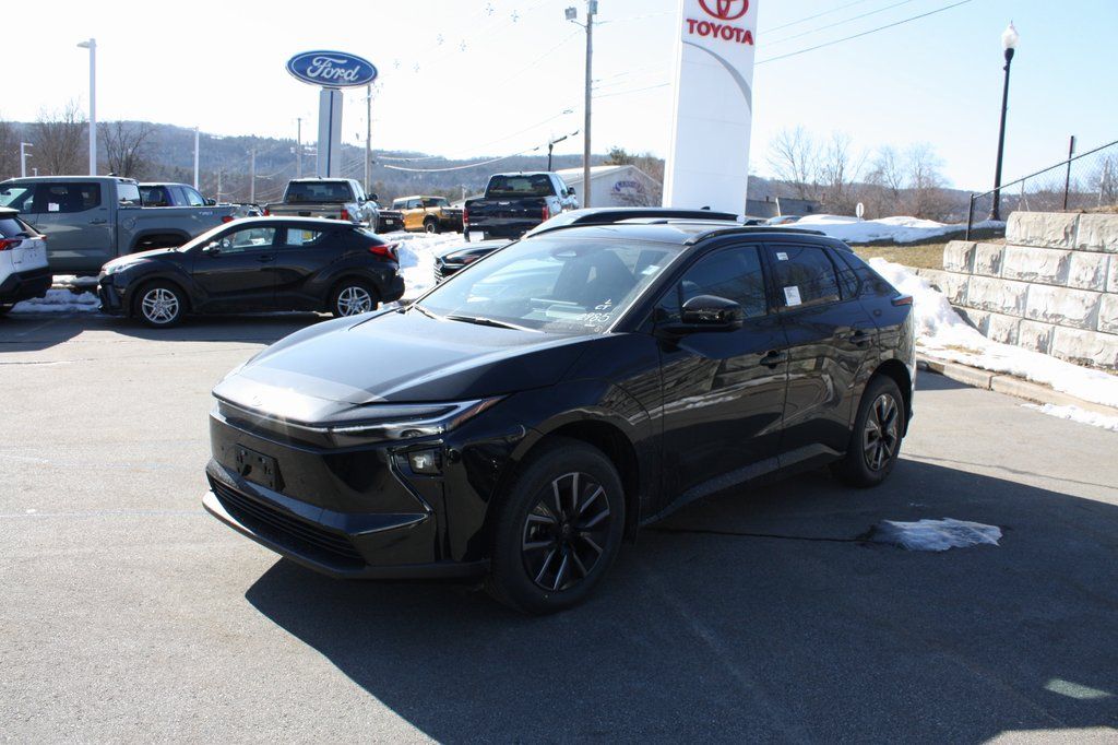The 2026 Toyota bZ XLE in Midnight Black Metallic offers sleek, modern electric elegance with outstanding efficiency of 131/109 City/Highway MPG and premium comfort for every drive. It features heated front seats, a heated steering wheel, rain-sensing wipers, power liftgate, and a panoramic view monitor for effortless all-weather luxury. Stay seamlessly connected with Apple CarPlay and Android Auto integration plus SiriusXM entertainment, while remote keyless entry, HomeLink garage door transmitter, and an auto-dimming rearview mirror simplify daily convenience. Confidence comes standard with an emergency communication system including a 10-year Safety Connect trial subscription, exterior parking camera, turn signal indicator mirrors, low tire pressure warning, and occupant sensing airbag. Practical protection from all-weather floor liners and cargo mat, door edge guards, and mudguards ensures lasting durability in this sophisticated, eco-friendly crossover ready for urban commutes and weekend escapes alike.