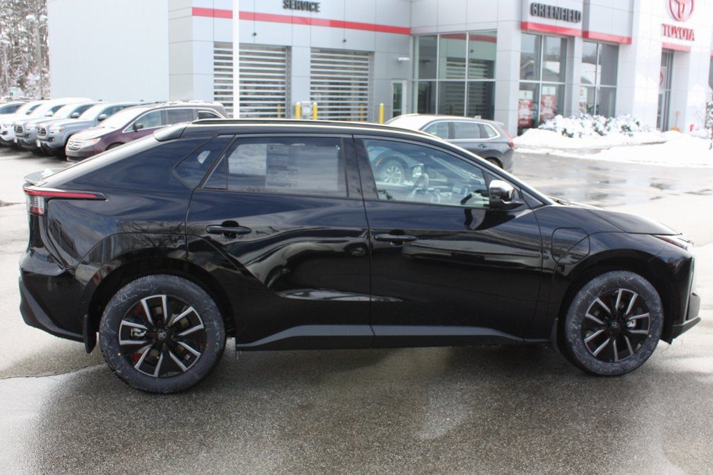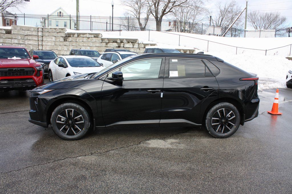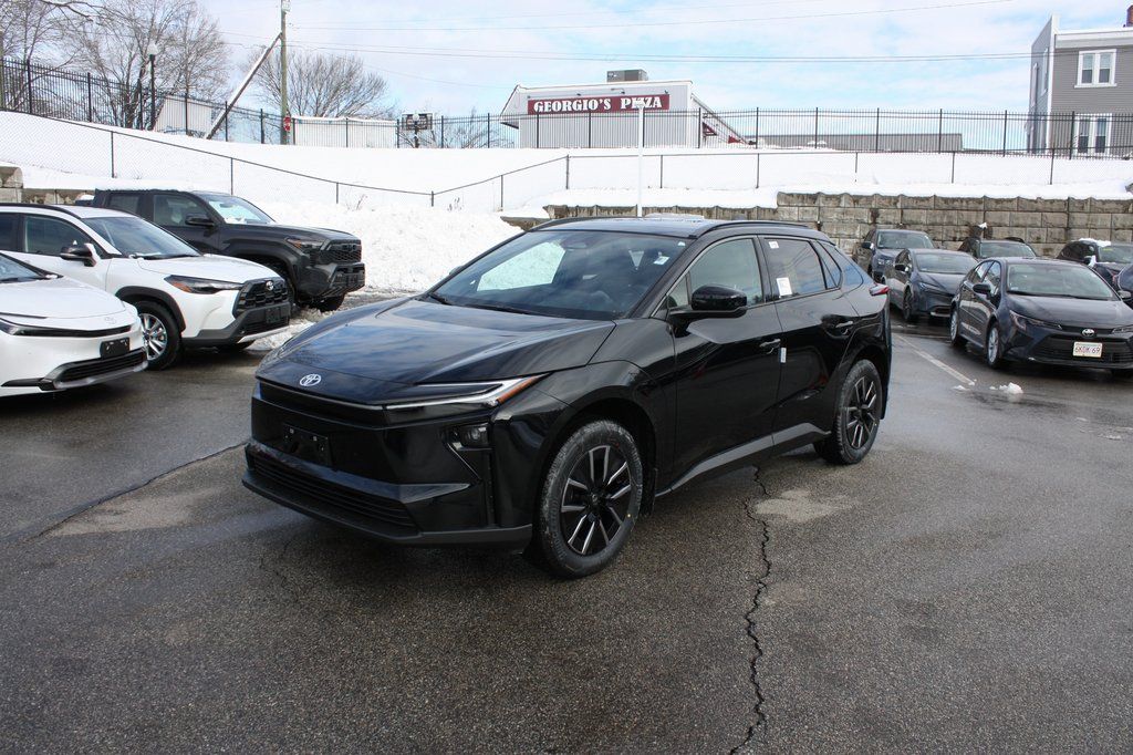 The 2026 Toyota bZ XLE in Midnight Black Metallic delivers sleek all-electric sophistication with outstanding efficiency of 131 City and 109 Highway MPG and premium everyday comfort. It features Drive Connect navigation with a 3-year trial including Cloud Navigation, real-time traffic, and Google POI, plus seamless Apple CarPlay and Android Auto integration, SiriusXM entertainment, a power liftgate, and heated front seats for effortless luxury. Convenience comes standard with remote keyless entry, HomeLink garage door transmitter, an auto-dimming rearview mirror, and rain sensing wipers, while an emergency communication system with a 10-year Safety Connect trial, exterior parking camera rear, turn signal indicator mirrors, low tire pressure warning, and occupant sensing airbag provide confident peace of mind. Durable all-weather floor liners with cargo protection, mudguards, and door edge guards add lasting practicality to this refined and capable electric crossover.