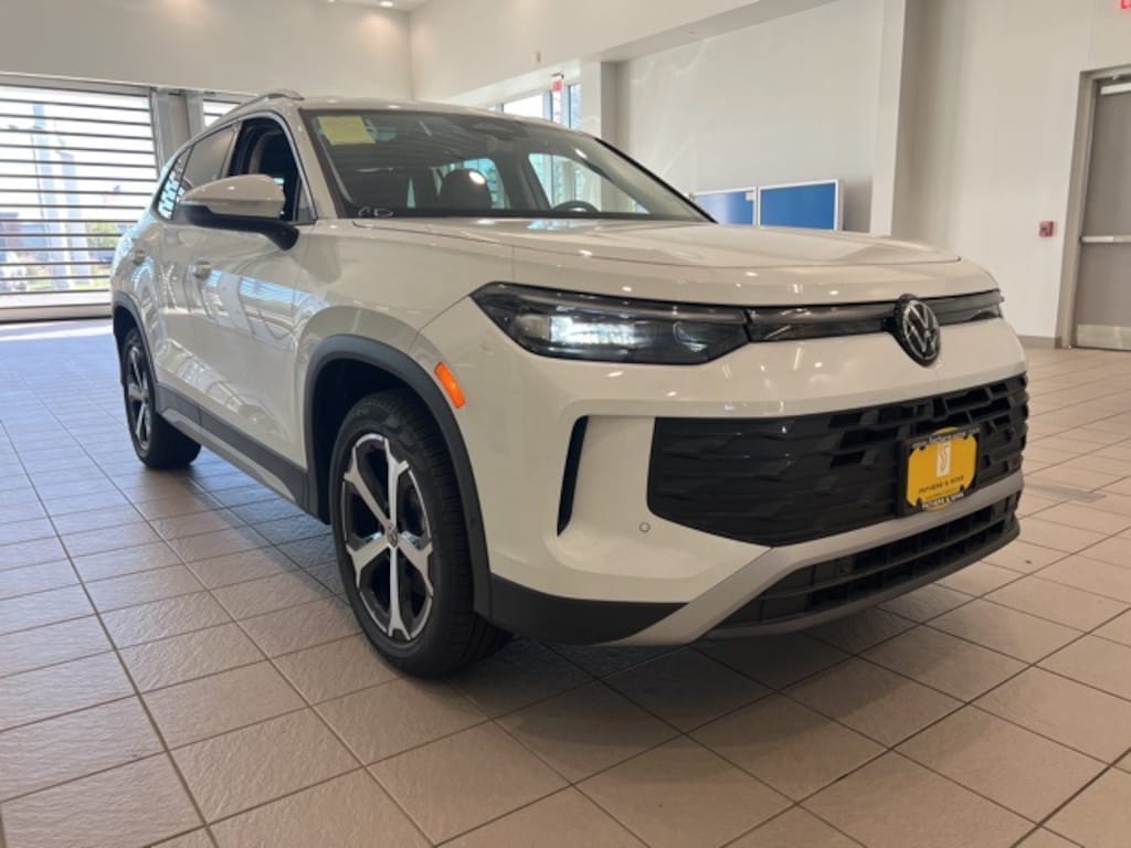AWD, 17" Alloy wheels, 4-Wheel Disc Brakes, 4-Wheel Independent Suspension, 7 Speakers, ABS brakes, Air Conditioning, AM/FM radio: SiriusXM with 360L, Auto High-beam Headlights, Auto-dimming Rear-View mirror, Automatic temperature control, Brake assist, Bumpers: body-color, Compass, Delay-off headlights, Driver door bin, Driver vanity mirror, Dual front impact airbags, Dual front side impact airbags, Electronic Stability Control, Emergency communication system: VW Car-Net Safe & Secure 5-year, Exterior Parking Camera Rear, Four wheel independent suspension, Front anti-roll bar, Front Bucket Seats, Front Center Armrest, Front dual zone A/C, Front reading lights, Fully automatic headlights, Heated door mirrors, Heated Front Seats, Heated front seats, Illuminated entry, Knee airbag, Leather Shift Knob, Low tire pressure warning, Occupant sensing airbag, Outside temperature display, Overhead airbag, Overhead console, Panic alarm, Passenger door bin, Passenger vanity mirror, Perforated V-Tex Leatherette Seating Surfaces, Power door mirrors, Power driver seat, Power Liftgate, Power steering, Power windows, Radio data system, Radio: MIB4 Composition Media Touchscreen AM/FM, Rain sensing wipers, Rear anti-roll bar, Rear reading lights, Rear seat center armrest, Rear side impact airbag, Rear window defroster, Rear window wiper, Remote keyless entry, Security system, Speed control, Speed-sensing steering, Split folding rear seat, Spoiler, Steering wheel mounted audio controls, Tachometer, Telescoping steering wheel, Tilt steering wheel, Traction control, Trip computer, Turn signal indicator mirrors, Variably intermittent wipers, and Wheels: 19" 2-Tone Machined Alloy.