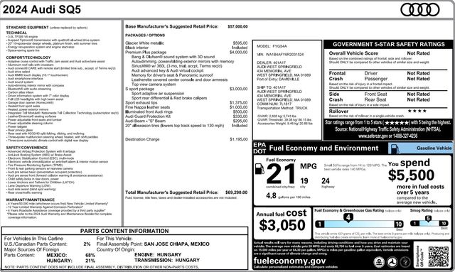 LOCATED AT 989 MEMORIAL AVE!! Carfax One Owner, Complete Service Records, Sold New Here, Still Under Factory Warranty, Local Client Trade in on New Audi, Excellent Condition Both Inside and Out, Passed our Comprehensive Quality Inspection and Recently Serviced with Oil Change.**Price excludes, tax, title, and registration fees. Includes, $799 Dealer Documentation fee. CARFAX One-Owner. Clean CARFAX. Glacier White 2024 Audi SQ5 Premium Plus quattro quattro 8-Speed Automatic with Tiptronic 3.0L TFSI **Price excludes, tax, title, and registration fees. Includes, $799 Dealer Documentation fee..