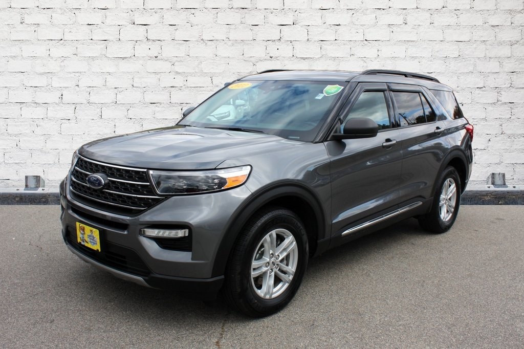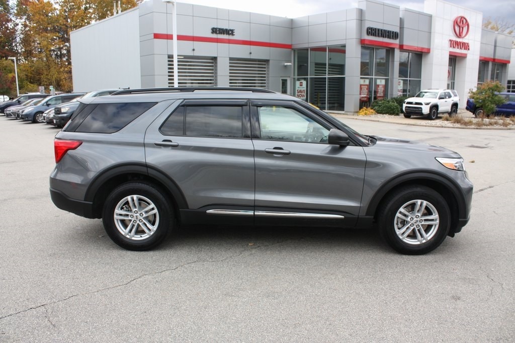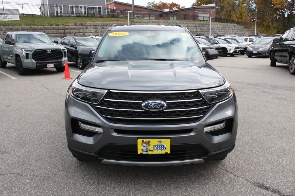 The 2022 Ford Explorer XLT in bold Carbonized Gray Metallic blends versatile performance with advanced technology for a dynamic driving experience. Equipped with SiriusXM, SYNC 3 Communications & Entertainment System, SYNC 3 with Apple CarPlay/Android Auto, Voice-Activated Touchscreen Navigation System, and FordPass Connect, it ensures seamless connectivity and navigation. Enjoy heated front seats, a heated steering wheel, remote start system, and SecuriCode keyless entry keypad for comfort and convenience, while a power liftgate and cargo area management system add practicality. Safety is prioritized with a low tire pressure warning, occupant sensing airbag, exterior parking camera, speed-sensitive wipers, evasive steering assist, intelligent adaptive cruise control, and auto start-stop removal, making this Explorer XLT ideal for family adventures and daily commutes.