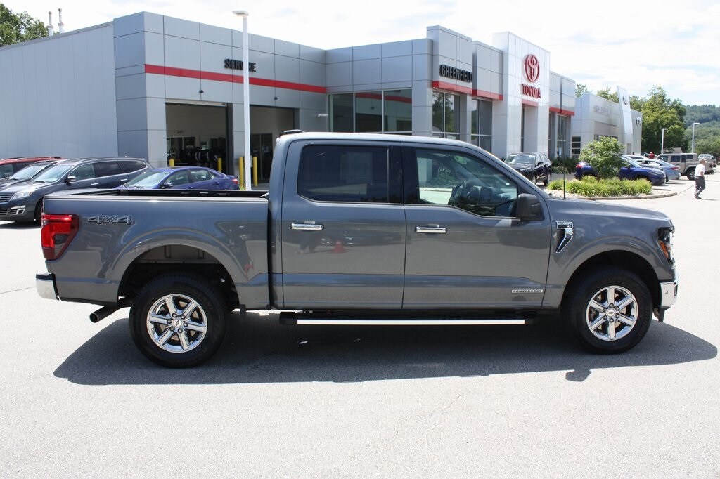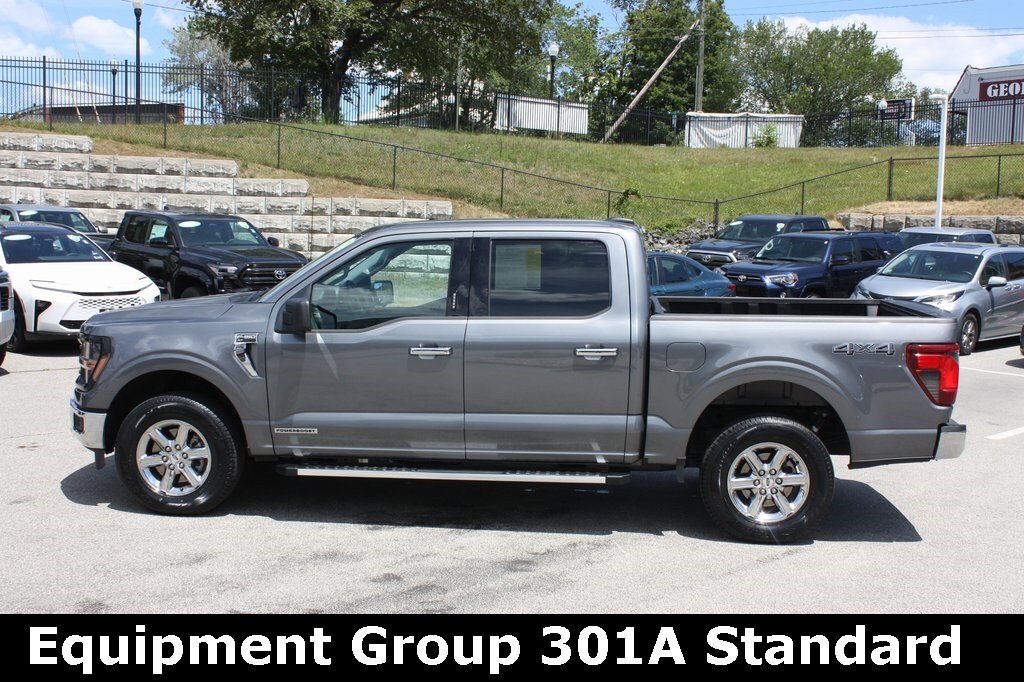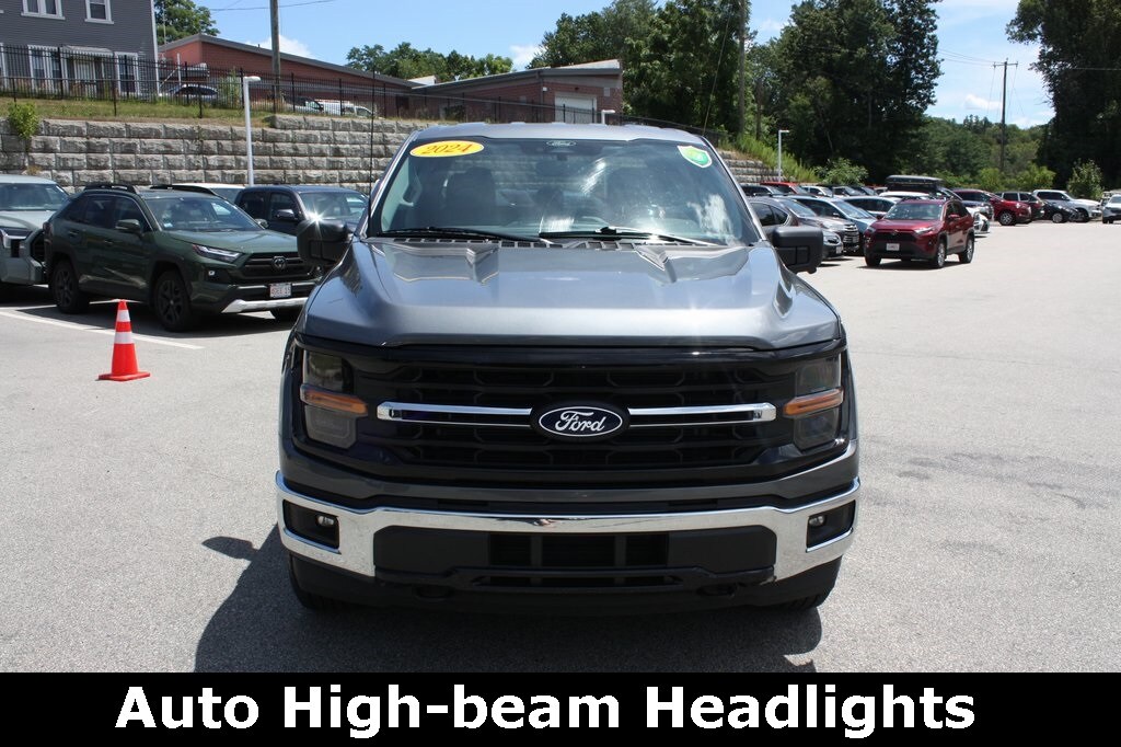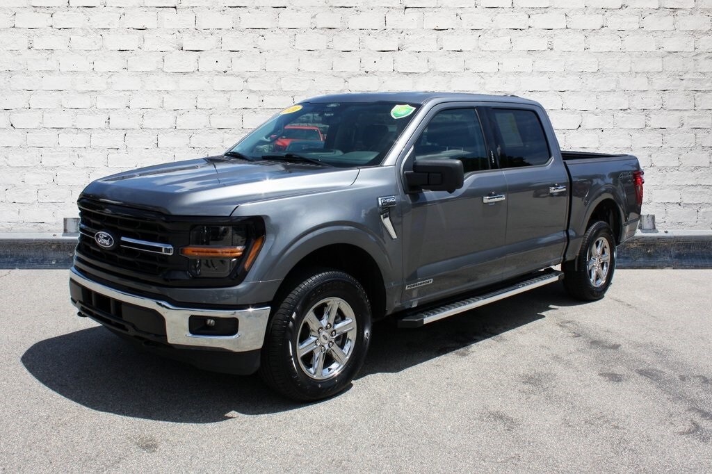 The 2024 Ford F-150 XLT in sleek Carbonized Gray Metallic blends rugged capability with modern technology for a versatile driving experience. Equipped with SiriusXM with 360L and SYNC 4 with Enhanced Voice Recognition, it offers seamless connectivity and entertainment. Comfort and convenience are elevated with a console worksurface, auto-dimming rear-view mirror, and partitioned lockable rear storage, while remote keyless entry and a security system add peace of mind. Safety features include low tire pressure warning and occupant sensing airbag, complemented by stylish chrome wheels, making this F-150 XLT perfect for work, adventure, and everyday driving.