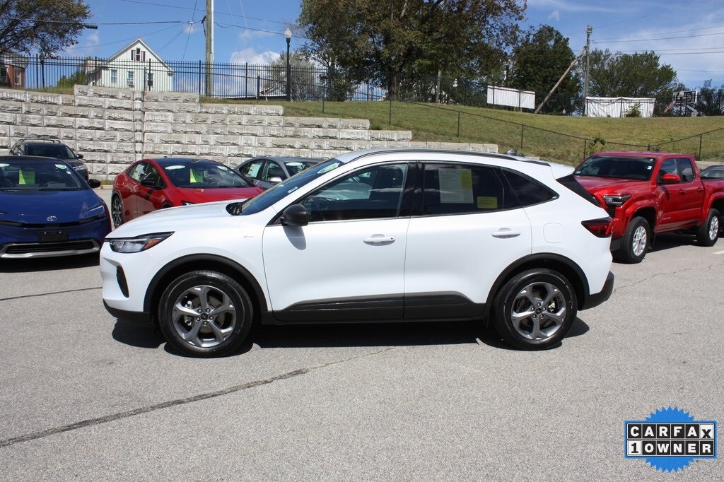 The 2025 Ford Escape ST-Line in sleek Space Silver Metallic blends sporty style with advanced technology for a dynamic driving experience. Equipped with SYNC 4, SiriusXM, and FordPass Connect, it ensures seamless connectivity and entertainment. Safety is prioritized with remote keyless entry, low tire pressure warning, occupant sensing airbag, electronic stability control, auto high-beam headlights, and speed-sensitive wipers for confident handling. Illuminated entry and a compass add convenience and practicality, making this Escape ST-Line ideal for urban commutes and adventurous getaways.