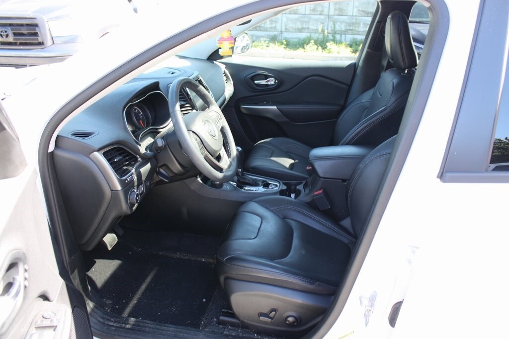 The 2022 Jeep Cherokee Limited in striking Bright White Clearcoat blends sophisticated style with advanced technology for a versatile driving experience. Equipped with GPS Navigation, SiriusXM Satellite Radio, SiriusXM Travel Link, SiriusXM Traffic Plus, Integrated Voice Command with Bluetooth, Apple CarPlay, Google Android Auto, and 4G LTE Wi-Fi Hot Spot, it ensures seamless connectivity and entertainment. Enjoy heated and ventilated front seats, a heated steering wheel, fore/aft adjusting 2nd row seat, and a power moonroof for premium comfort, while a hands-free power liftgate, roof rack rails, and carpeted cargo area trim panels add practicality. Safety features include ParkView Rear Back-Up Camera, rain sensing wipers, turn signal indicator mirrors, chrome tow hooks, Stop-Start Multiple VSM System, and an engine oil cooler, making this Cherokee Limited ideal for family adventures and stylish commutes.