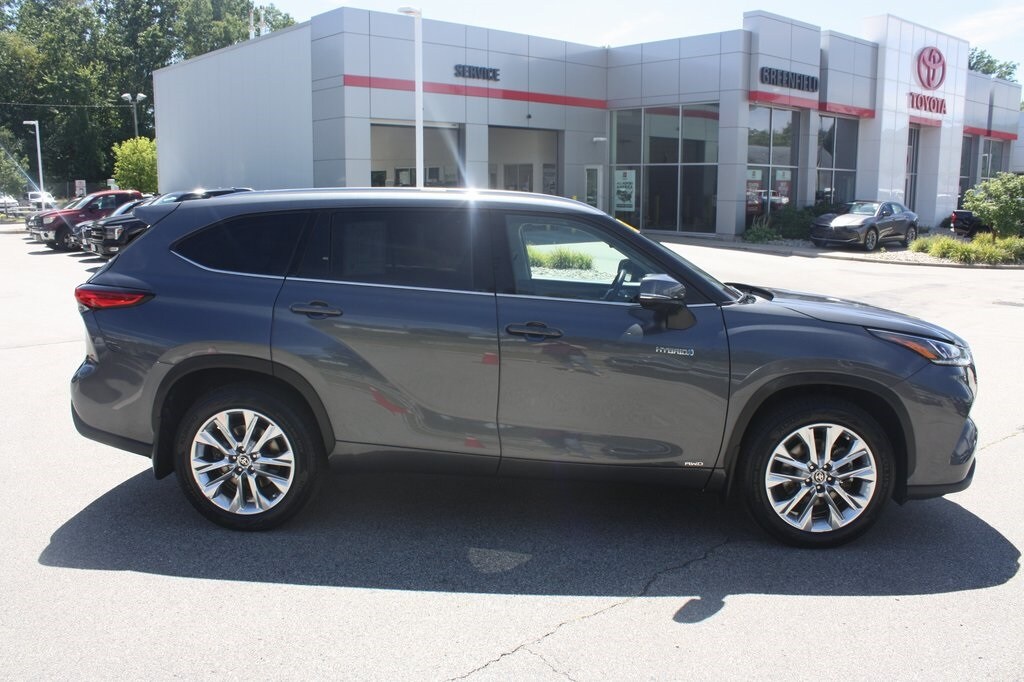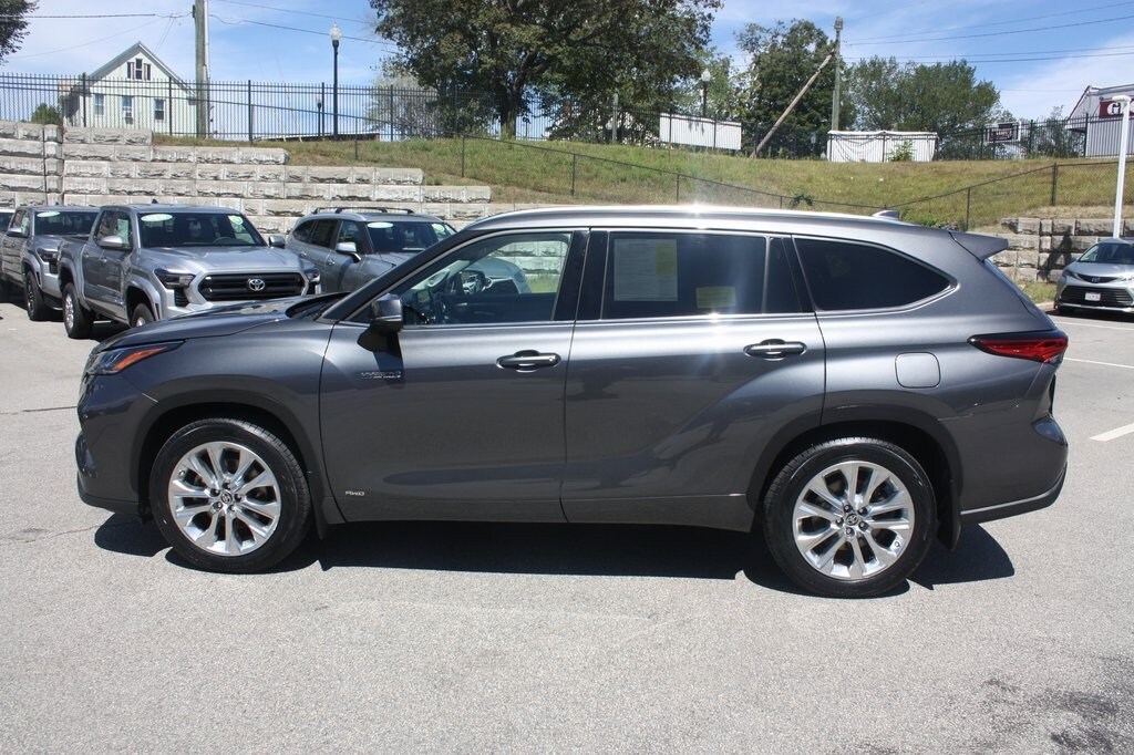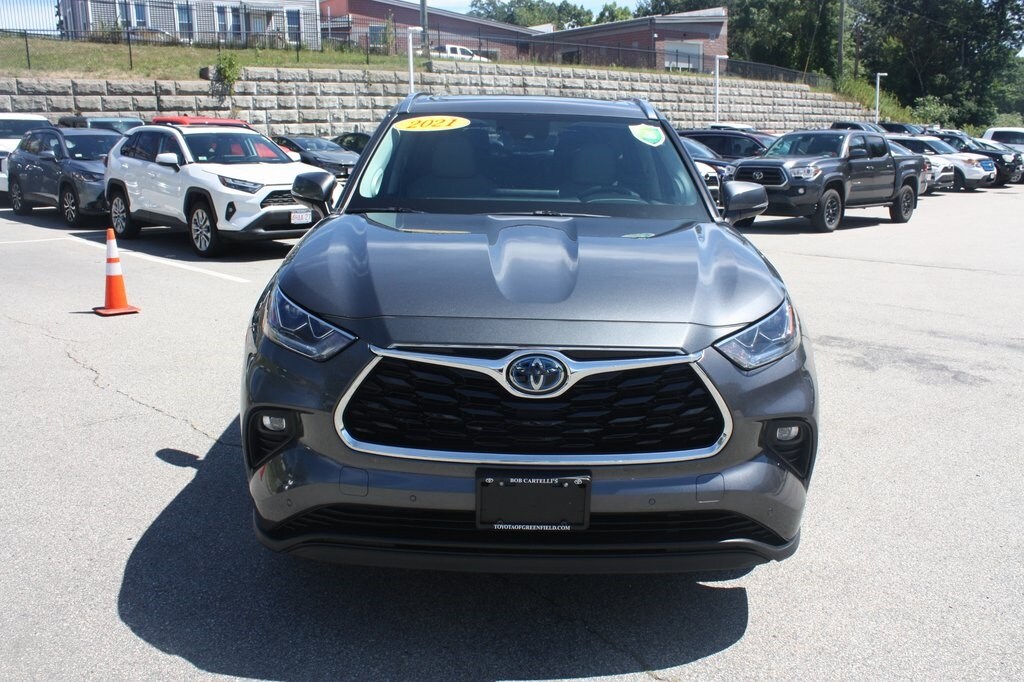The 2021 Toyota Highlander Hybrid Limited in sleek Magnetic Gray Metallic blends eco-friendly efficiency with luxurious features for a versatile family-friendly experience. Equipped with SiriusXM, Apple CarPlay/Android Auto, and a HomeLink garage door transmitter, it ensures seamless connectivity and convenience. Enjoy heated and ventilated front bucket seats, a heated steering wheel, a power moonroof, and reclining 3rd row seating for premium comfort. Safety features include remote keyless entry, low tire pressure warning, occupant sensing airbag, and an exterior parking camera, while roof rack rails, all-weather floor and cargo liners, door edge guards, and turn signal indicator mirrors add practicality and style, making this Highlander Hybrid Limited ideal for sophisticated commutes and adventurous journeys.