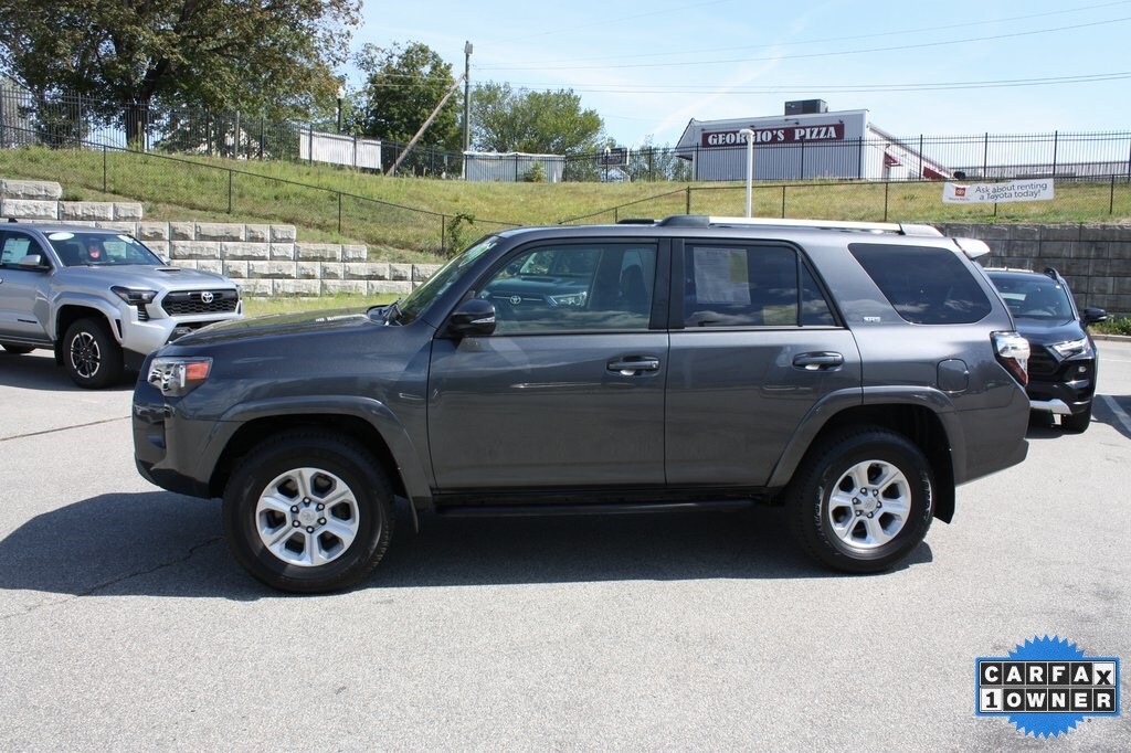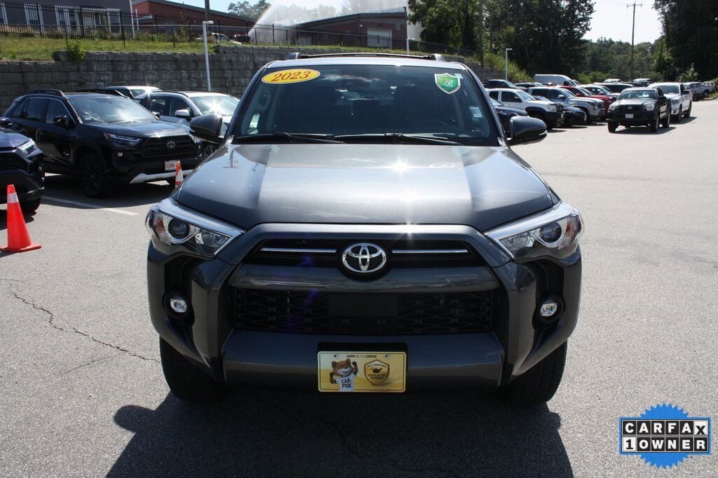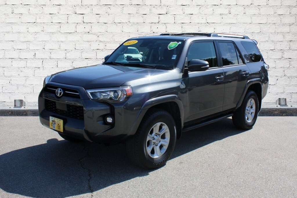 The 2023 Toyota 4Runner SR5 Premium in sleek Magnetic Gray Metallic blends rugged capability with modern sophistication for an adventurous driving experience. Equipped with Premium Audio with Dynamic Navigation, Apple CarPlay/Android Auto, and a HomeLink garage door transmitter, it ensures seamless connectivity and convenience. Enjoy heated front bucket seats and a moonroof with tilt up and slide for premium comfort, while a front dual USB power port charger, all-weather floor liners with cargo tray, roof rack cross bars, hitch ball mount, and alloy wheel locks enhance practicality. Safety and style are elevated with an exterior parking camera and turn signal indicator mirrors, making this 4Runner SR5 Premium ideal for off-road exploration and daily commutes.